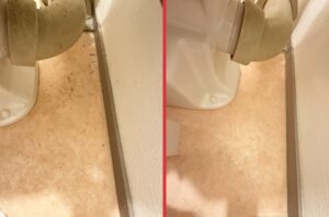 浴室は粘着性のある細かい黒い汚れが床の目地に入り込み広がっている状態で