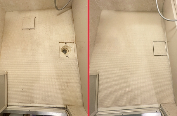 浴室は粘着性のある細かい黒い汚れが床の目地に入り込み広がっている状態で