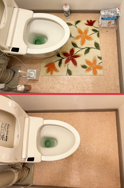 トイレは裏側に特にホコリと汚れが溜まっていたため、その部分を重点的に清掃し、