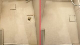 西宮のお客様より、トイレと浴室のお掃除のご依頼をいただきました。こちらのお客様は約7年前にも一度ご利用いただいており、その際も浴室の汚れがひどく、苦戦していたとお聞きし今回はスタッフ2名体制で伺いました。浴室は粘着性のある細かい黒い汚れが床...